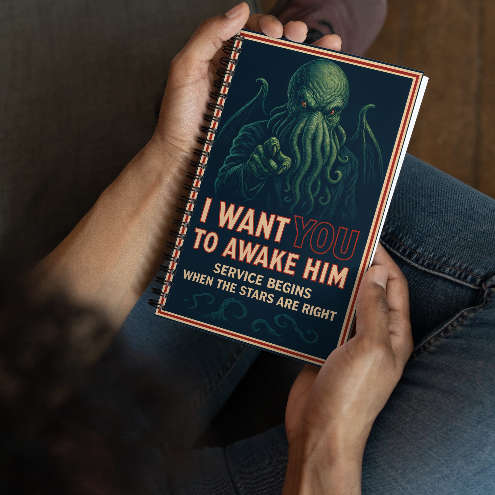 I Want You — To Awake Him (Cthulhu Cult Recruitment) Spiral notebook